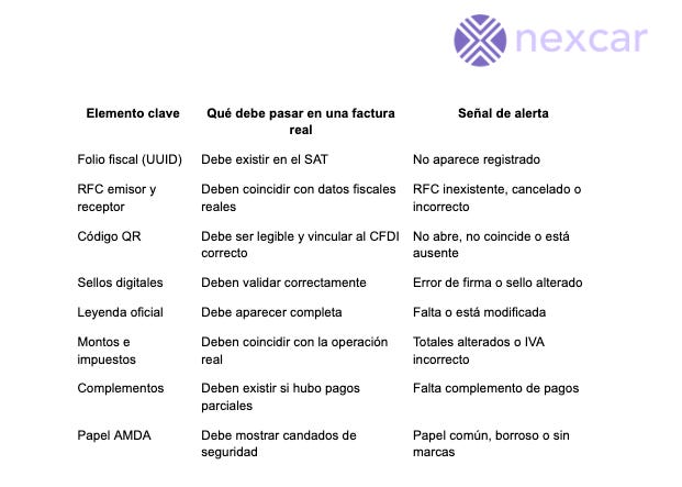 • Cualquier inconsistencia en QR, RFC, montos o datos del vehículo justifica frenar la compra